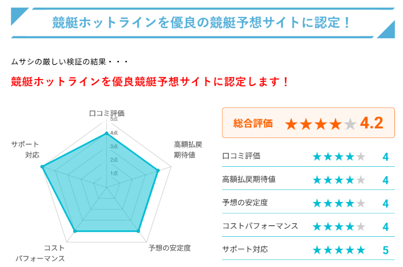 まぁ、酷い予想を堂々と公開している競艇ホットラインですが、なんと高く評価している検証サイトが存在。