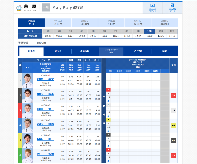 ボートミリタリーの無料予想は5点とかなり絞っているので、保険として2号艇選手は買い目に含める必要があると、出走表を見た時点で感じました。