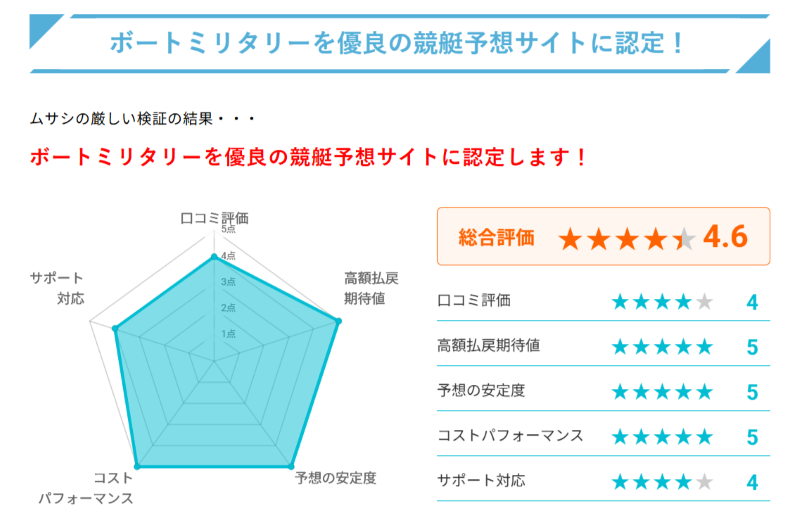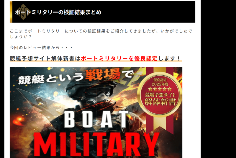 その証拠に、あれだけ無料予想を外したにも関わらず、多くの検証サイトがボートミリタリーを絶賛しまくっているんですよ。