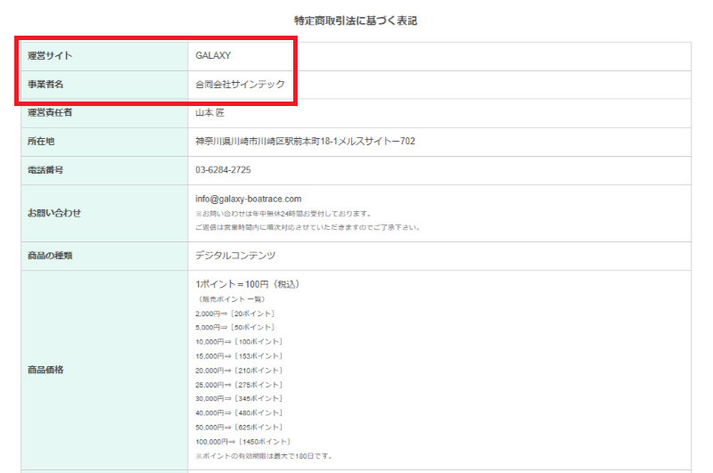 まず、気になるのは運営会社「合同会社サインテック」。競艇予想サイトの多くは、「(競艇予想サイトと同名)運営事務局」と記載されています。