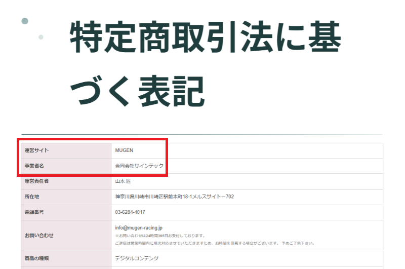 競艇MUGENの運営会社情報を見ると、以下のように記載されていました。