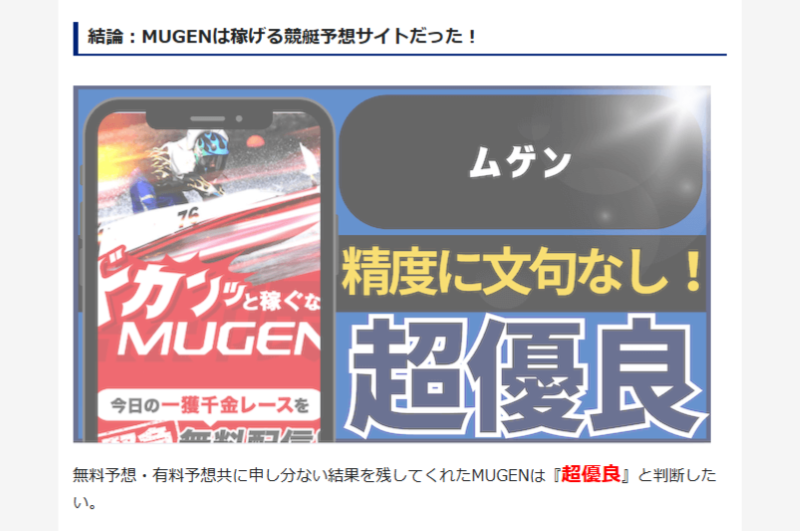 これ、あくまでもごく一部ですからね。競艇MUGENをおすすめしない検証サイトを探すほうが難しいくらい。